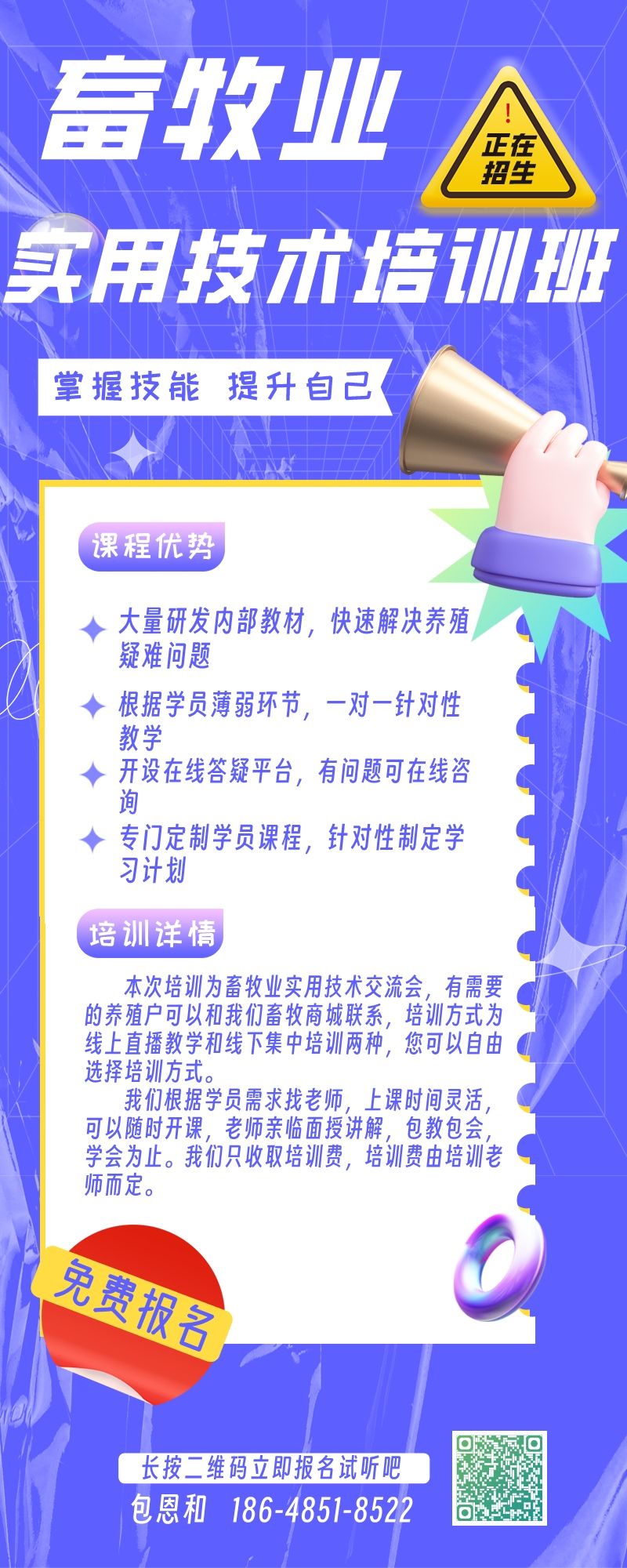 1、專業(yè)技術(shù):培訓(xùn)由經(jīng)驗豐富的專家授課,確保學(xué)員接受到專業(yè)的養(yǎng)牛技術(shù)教育。