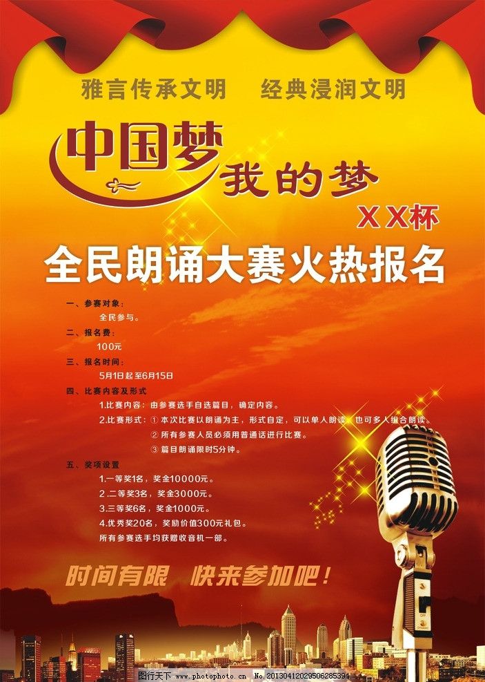 朗誦比賽背景:小巷深處的詩(shī)意舞臺(tái)。這是一場(chǎng)充滿詩(shī)意和情感的朗誦比賽,參賽選手們?cè)谶@個(gè)獨(dú)特的舞臺(tái)上展現(xiàn)自己的朗誦才華。這個(gè)舞臺(tái)隱藏在小巷深處,仿佛與世隔絕,為朗誦愛(ài)好者提供了一個(gè)展示自我、交流情感的平臺(tái)。比賽旨在挖掘朗誦藝術(shù)的人才,傳承文化精髓,讓更多人領(lǐng)略到朗誦藝術(shù)的魅力。