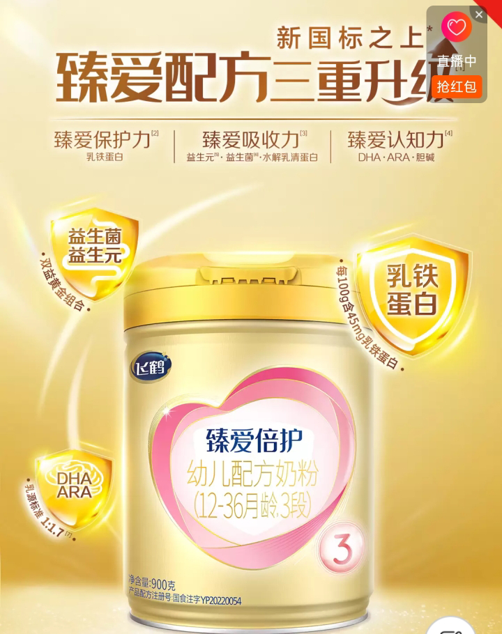 1、科技創(chuàng)新元素:飛鶴奶粉臻愛(ài)系列融入豐富的科技創(chuàng)新元素,成為科技與育兒的橋梁。