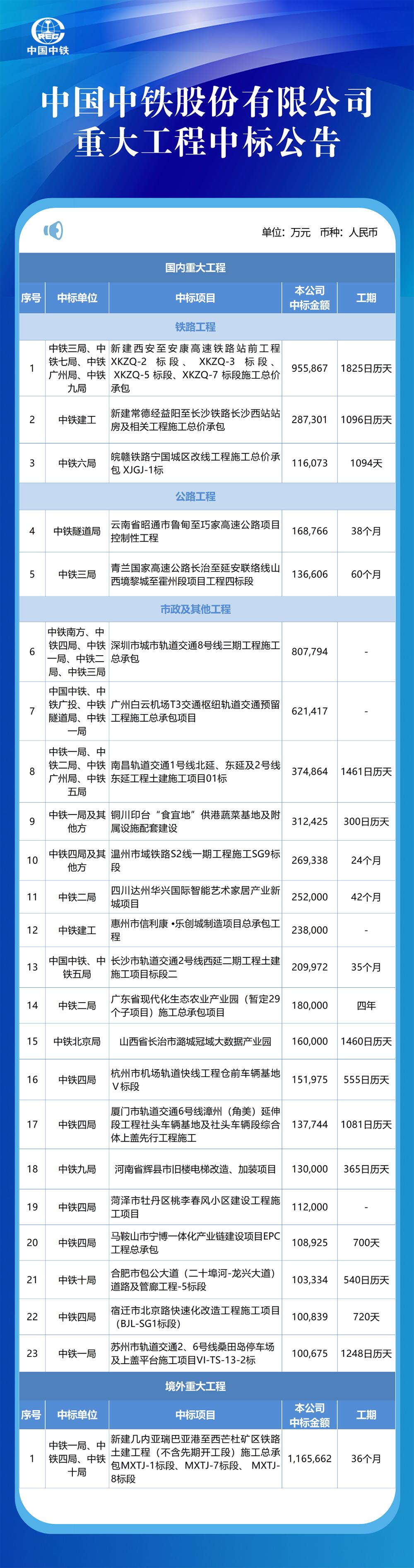 中國鐵建最新中標(biāo)信息概覽,中標(biāo)項目一覽無余