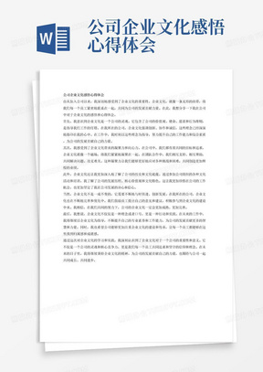 企業(yè)文化心得體會(huì)摘要:最近深入了解了公司的企業(yè)文化,感受到了其獨(dú)特的魅力和價(jià)值。企業(yè)文化不僅是企業(yè)的靈魂,更是員工成長(zhǎng)的土壤。通過(guò)參與各種企業(yè)活動(dòng),我深刻體會(huì)到了團(tuán)隊(duì)合作的重要性,以及企業(yè)在追求目標(biāo)過(guò)程中的堅(jiān)持與努力。我認(rèn)識(shí)到,只有融入企業(yè)文化,才能更好地發(fā)揮個(gè)人價(jià)值,實(shí)現(xiàn)個(gè)人與企業(yè)的共同發(fā)展。我將繼續(xù)深化對(duì)企業(yè)文化的理解,為企業(yè)的發(fā)展貢獻(xiàn)自己的力量。